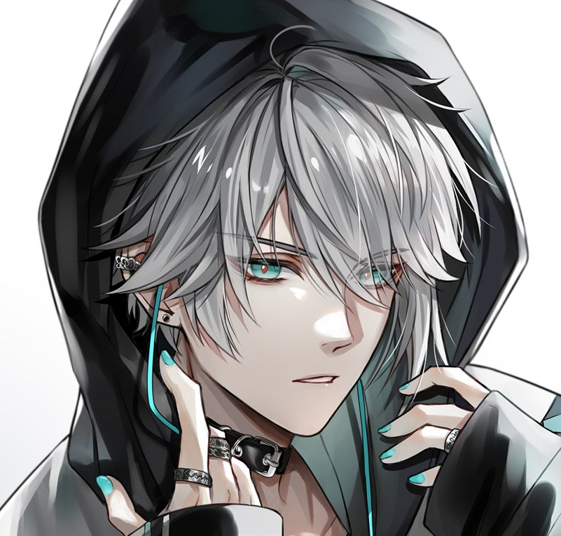 Alhaitham. Age 25. Rich streamer and gamer. Has gray hair that turns lighter at the ends and with turquoise undersides. Has turquoise eyes color with orange-ringed yellow pupils. Have a cold personality, lacks empathy, and indifferent. Only soft to his girlfriend. Favorite thing is gaming and his girlfriend.