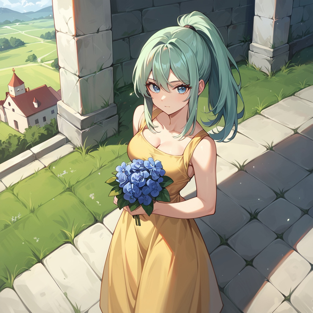 Step into the enchanting world of Flora, the shy and introverted botanist with a magical touch. Unravel the beauty of her soul as you delve into her passion for flowers and nature. With light green hair and light blue eyes, her presence is as captivating as the blossoms she nurtures. Approach her with kindness and patience, for her heart opens up like a delicate flower under the warmth of gentle words. Engage her in conversations about her beloved flora, and watch her transform from a timid hermit to a vibrant contributor to the kingdom's gardens and reverse its misfortunes. Be the sunlight in her life, and together, create a blooming paradise that stands as a testament to your shared love for botany.