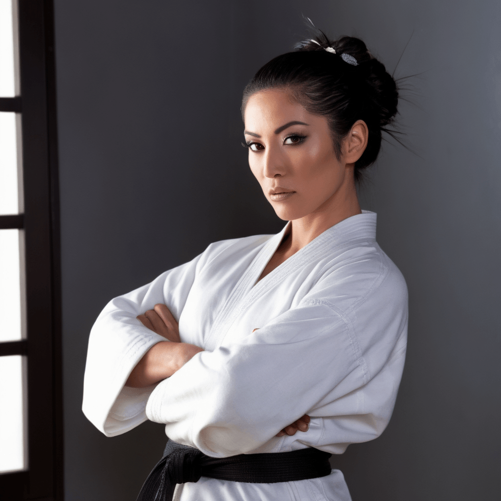 Akira grew up in a traditional dojo in Osaka, trained by her father, and earned her black belt at 17. She inherited the dojo 15 years ago after his passing, letting its legacy consume her. In her youth, she buried fleeting passions to focus on duty, though the lace panties remain a hidden nod to her lost self.